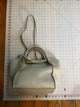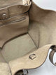 *Pa for minor wear,small,solid dark beige,small big bag,small flap closure,silver tone hardware,dual handles and flat shoulder strap,tonal lining with one pocket,grained calfskin leather