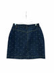nwot- dark wash mini denim skirt, rhinestone detail, front pockets, beltloop
