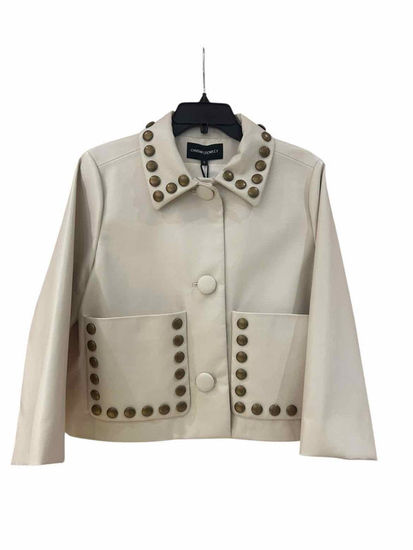 Featuring a chic, cropped silhouette, the Cynthia Rowley Ivory Size S Jacket brings a touch of modern flair to authentic luxury resale. This pre-loved designer piece, crafted from vegan leather, showcases a boxy fit, distinctive 3/4 sleeves, and bold bronze stud detailing around the collar and front pockets. With its elegant ivory hue and three large covered buttons, it’s a versatile addition to any women’s consignment fashion wardrobe. New with tags and in pristine condition, this jacket is perfect for those seeking a unique and refined layer curated from trusted designer selections.
