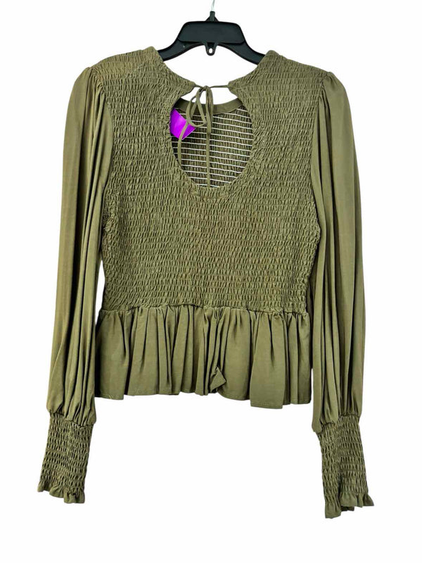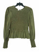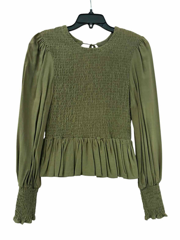 The color focus: The rich olive green of this dear john Olive Green Size XS Blouse transforms any wardrobe with its refined and versatile hue. Designed for the modern woman seeking authentic luxury resale and pre-loved designer fashion, this blouse features elegant long bishop sleeves with smocked cuffs and a delicate ruffle at the hem. The keyhole back with ties around the neck adds a touch of feminine detail, making it a beautiful addition to women's consignment fashion collections. Discover an eye-catching piece that complements your style while supporting sustainable shopping.