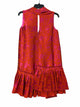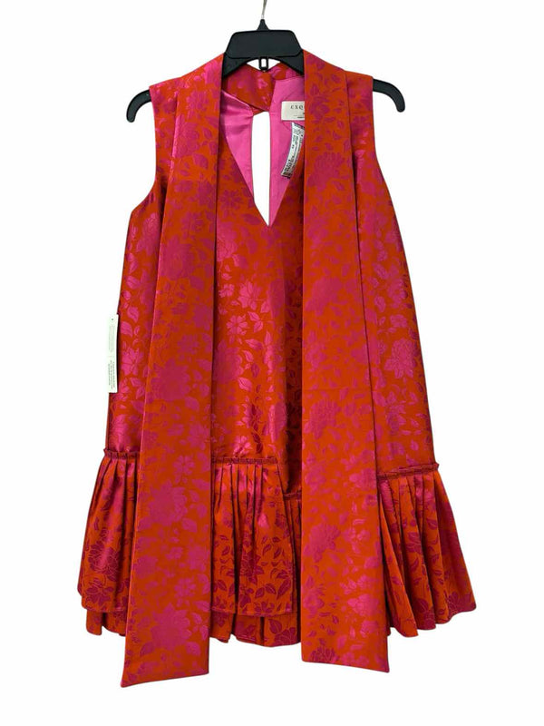 The orange and pink floral pattern of the EXQUISE\orangeandpinkSizeXSDress brings a vibrant yet refined touch to authentic luxury resale collections. This pre-loved designer piece features a playful shift silhouette with a ruffled skirt hem, finished with a matching sash for added versatility. The viscose blend fabric and sleeveless design offer comfort and movement, while the V neckline creates a timeless, feminine look. Curated for women’s consignment fashion enthusiasts, this chic mini dress arrives new with tags, delivering remarkable color and detail to your wardrobe.