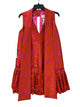 NWT,sleevelessorangewithpinkfloraldesignminidress,shiftstylewithruffleatbottomofskirt,vneckline,comeswithmatchingsash