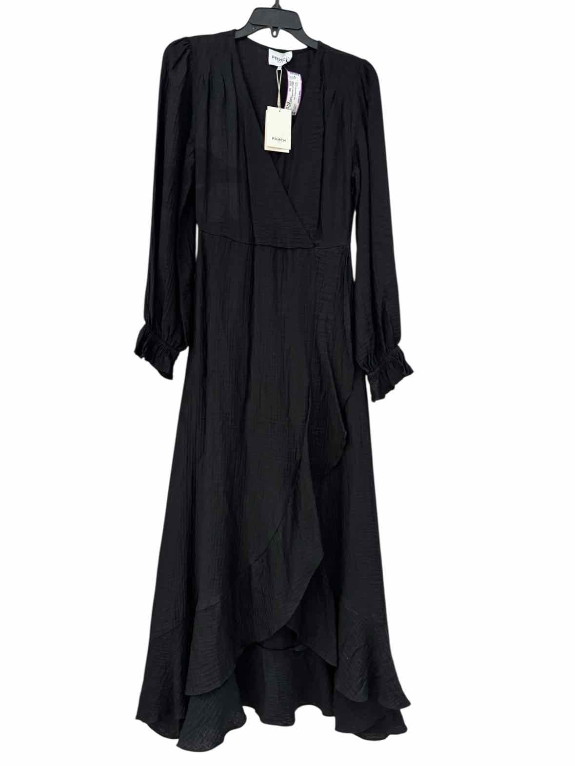 Featuring a wrap silhouette and delicate ruffle details, the FRNCH Black Size XS Dress brings a refined touch to authentic luxury resale. This long sleeve black maxi dress is crafted from a viscose blend, offering a soft, comfortable feel for any occasion. Designed for women's consignment fashion enthusiasts, this new-with-tags piece merges elegance with the playful movement of ruffles at the sleeve cuffs and skirt. Sourced as a pre-loved designer find, the dress is in pristine condition, making it a beautiful addition to any curated collection. Discover a tailored style that complements modern closets through trusted women's consignment.
