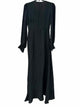 NWT, long sleeve black maxi dress, wrap style, ruffle on sleeve cuff, ruffle on skirt