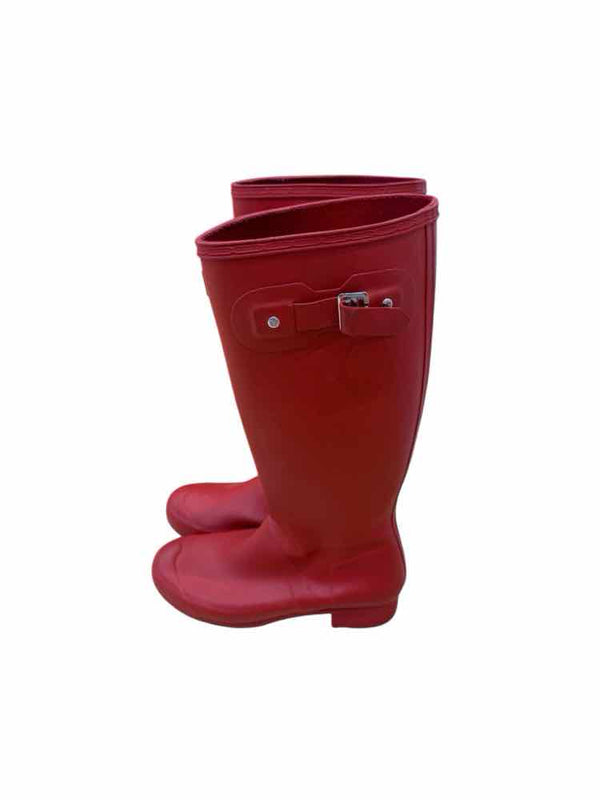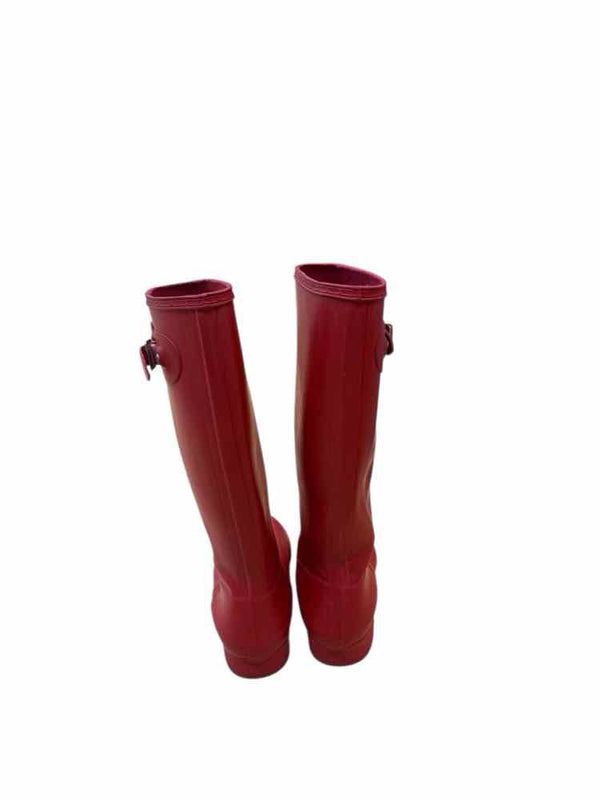 The bold red hue of these Hunter Red Size 7 Shoes brings a vibrant touch to any rainy day look. As original tall rain boots with a slight platform heel, they offer both style and practical protection from the elements. Carefully curated as part of our authentic luxury resale collection, this pre-loved designer find is in very good condition, making it a unique addition to any women’s consignment fashion wardrobe. Enjoy the reliable quality and iconic appeal that Hunter delivers, all while embracing sustainable shopping with this distinctive pair.