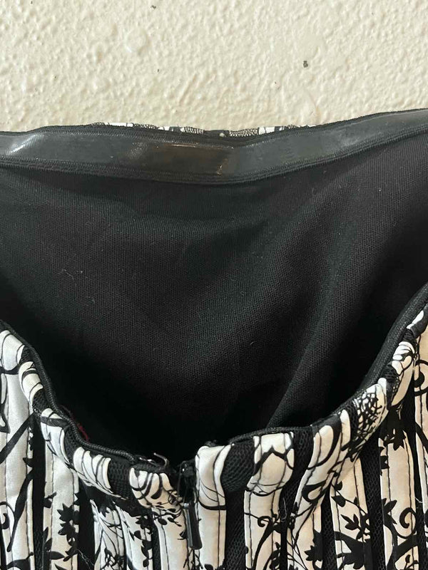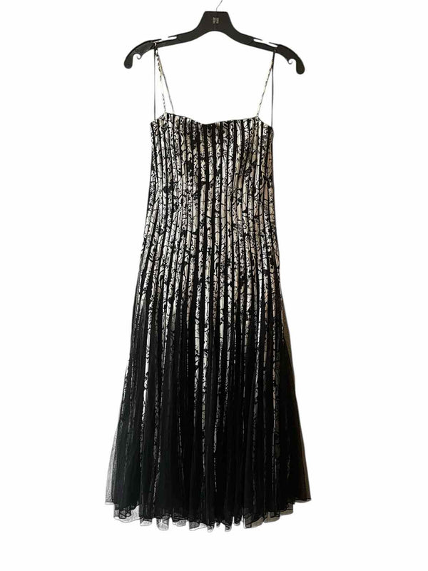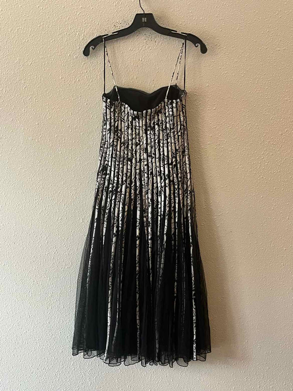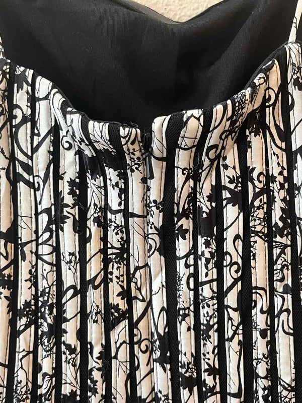 The color contrast of this pre-loved designer piece sets it apart in the world of authentic luxury resale. The JS Collection White and black Size 4 Gown/Evening Wear features a striking abstract floral print in white and black, offering a polished look for any special event. Its sleeveless, square neck silhouette, below-knee length, and accordion pleated midi dress design are complemented by a hidden zip closure and full lining, ensuring comfort and confidence. Carefully curated through women's consignment fashion, this item is offered in very good condition and is ready to enhance your wardrobe with its distinctive style.