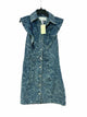 NWT, sleeveless medium wash denim mini dress, buttons up, floral pattern, ruffles on sleeves, collared
