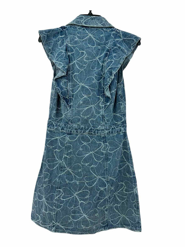The medium wash and floral pattern of the Ramy Brook Medium Wash Size 4 Dress bring a fresh, feminine touch to authentic luxury resale. Designed for women's consignment fashion lovers, this sleeveless denim mini dress features charming ruffles on the sleeves and a classic collared neckline. The button-up front and cotton blend fabric offer both comfort and easy styling, while the new-with-tags condition ensures a remarkable pre-loved designer find. Discover a beautiful blend of playful details and timeless appeal with this versatile piece, carefully sourced for your curated wardrobe.