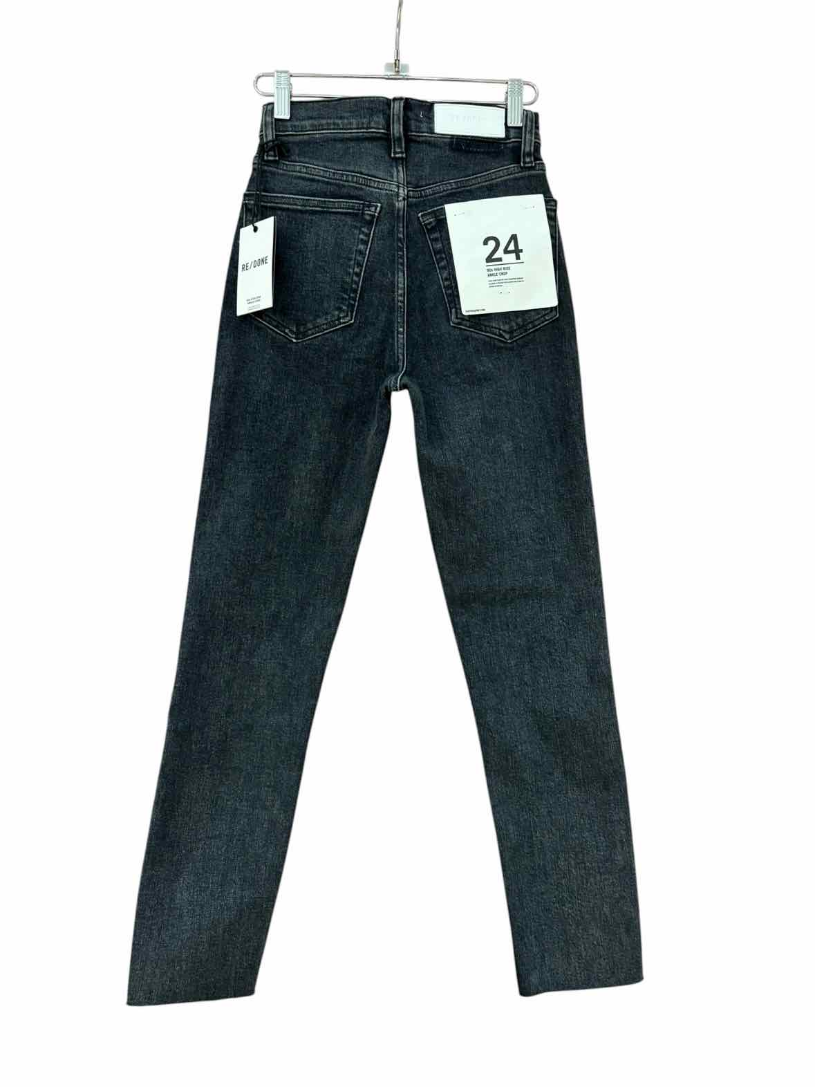 Featuring a high-rise, ankle-length silhouette, the Re/Done Black Size 24 Jeans are a refined addition to any women’s consignment fashion collection. Fitted for a tailored look, these authentic luxury resale jeans are crafted from classic black denim and finished with a silver button and zip closure. As a new-with-tags, pre-loved designer find, this style from Re/Done offers versatility and polish to your wardrobe. Discover the blend of comfort and chic design, carefully curated for those who appreciate quality and attention to detail.