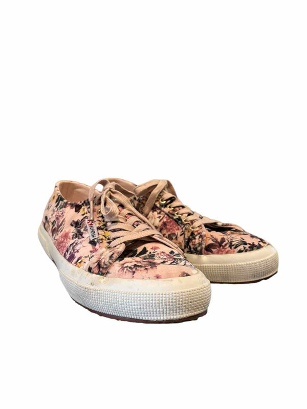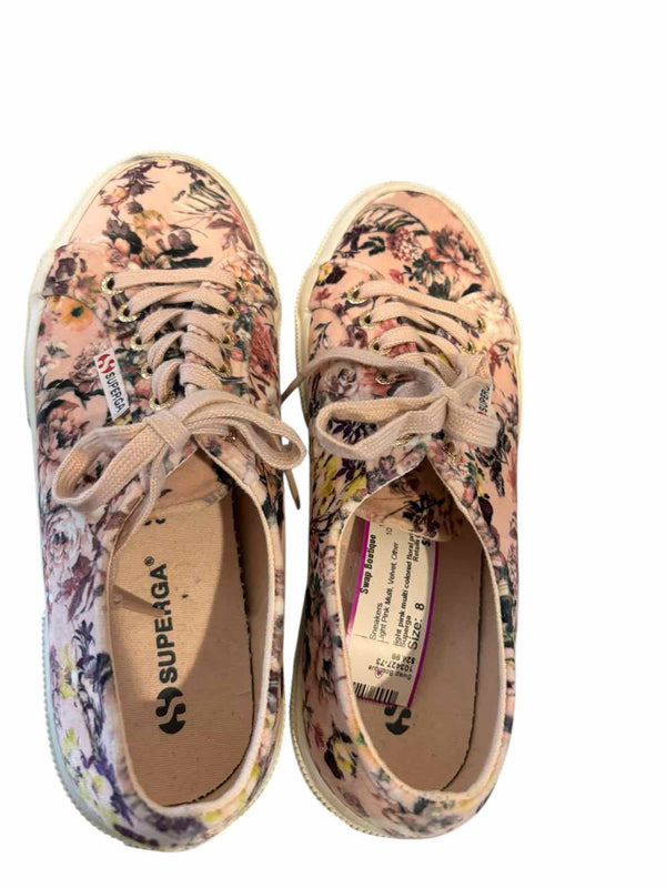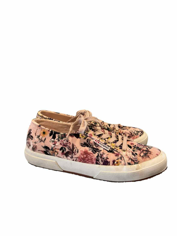 The color and pattern of these Superga Light Pink Multi Size 8 Sneakers bring a playful twist to authentic luxury resale. Crafted from velvet and finished with a light pink multi-colored floral print, this pre-loved designer pair is a fresh addition to any women's consignment fashion collection. The lace-up design with matching light pink laces and a crisp white sole reflect Superga’s iconic casual style, while the quality and comfort make them a remarkable find. Discover a unique blend of charm and comfort in these carefully curated sneakers, perfect for those seeking refined, high-quality footwear with a touch of whimsy.