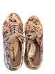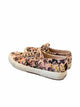 light pink multi colored floral printed velvet sneakers, lace up, light pink laces, white sole