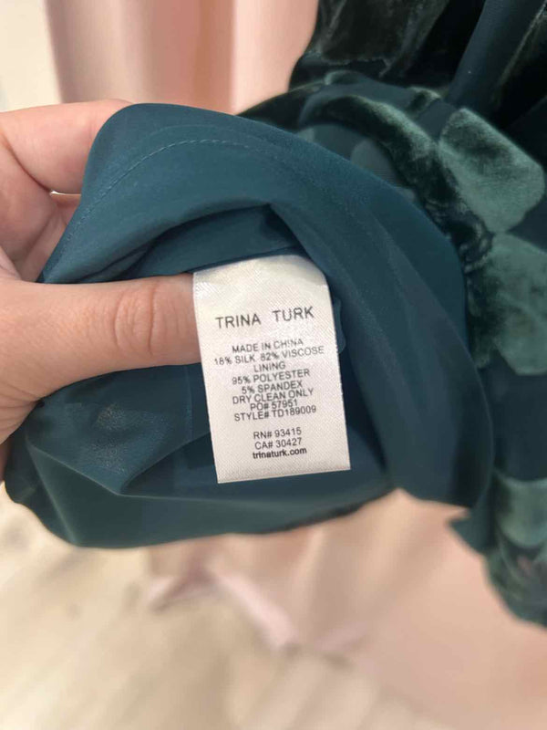 Crafted from a luxurious silk and viscose blend, the Trina Turk Emerald Size L Dress brings a refined touch to any pre-loved designer wardrobe. This authentic luxury resale mini dress features a rich emerald hue, a high neckline, and a textured velvet floral burnout design that sets it apart in women’s consignment fashion. The sleeveless shift silhouette, hook-and-eye closure at the neck, and back keyhole detail combine comfort and chic style, while the new-with-tags condition ensures a remarkable find. Discover an elegant addition to your collection with this carefully curated piece.