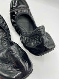 With dustbag,closed square toe,solid black patent cinched ballet flats,rubber sole