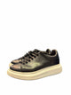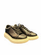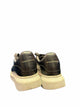 black sneaker, white platform sole, black laces, 5 dots on sides