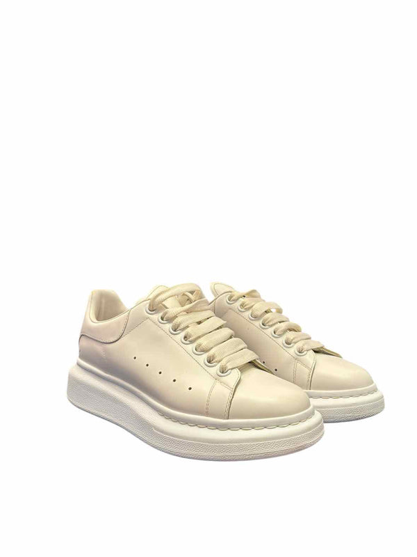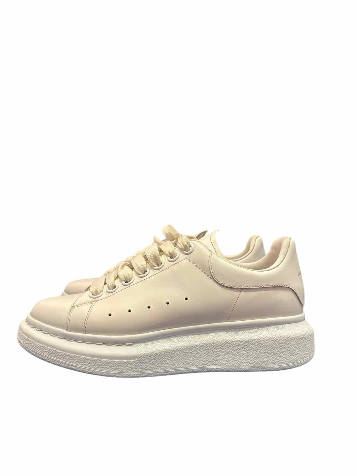 The color focus of these Alexander McQueen White Size 36 Shoes brings a crisp, modern touch to any collection of pre-loved designer footwear. Showcasing a full white leather exterior, these authentic luxury resale sneakers feature five side ventilation holes, a platform sole, and a gold logo detail on the back. The distinctive cheetah design on the sole adds a unique flair, blending classic and contemporary style. Ideal for those seeking premium women's consignment fashion, these size 36 shoes combine comfort with the renowned design elements of Alexander McQueen, offering a chic option sourced from trusted resale.
