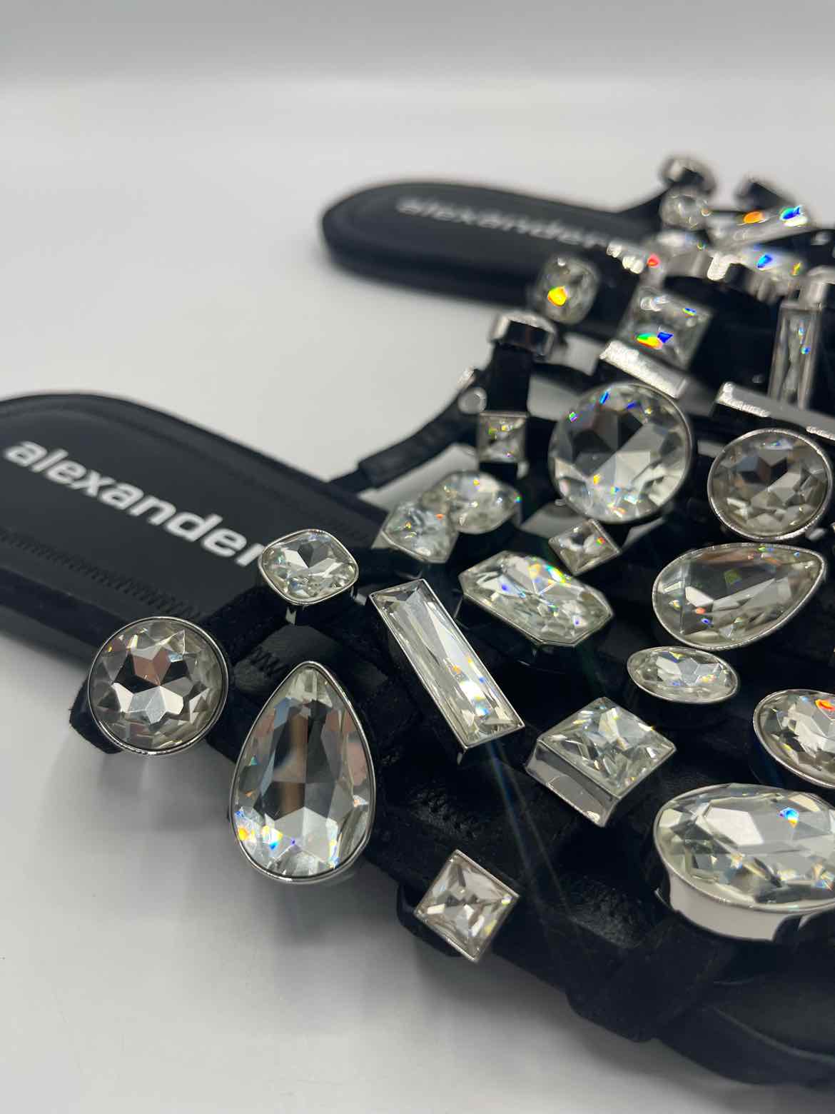 The black hue of these Alexander Wang Black Size 40 Shoes brings a refined and versatile touch to any closet, making them a remarkable find in authentic luxury resale. Showcasing a round cage toe and suede cage upper, these Amelia crystal mules are an ideal addition for those seeking pre-loved designer footwear within women’s consignment fashion. The distinctive silver crystal hardware and logo-embossed leather sole highlight Alexander Wang’s attention to detail, while the very good condition ensures lasting appeal. Discover a unique blend of chic design and quality craftsmanship with this curated pair, ready to enhance your collection.
