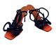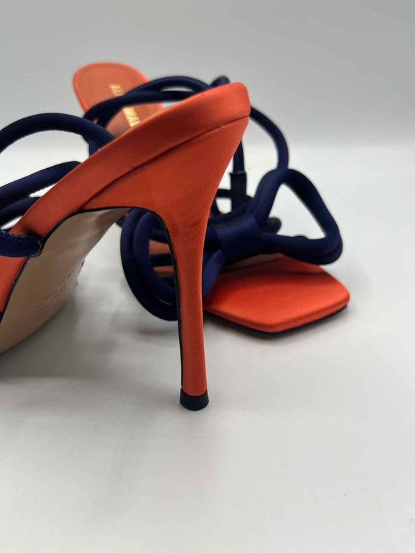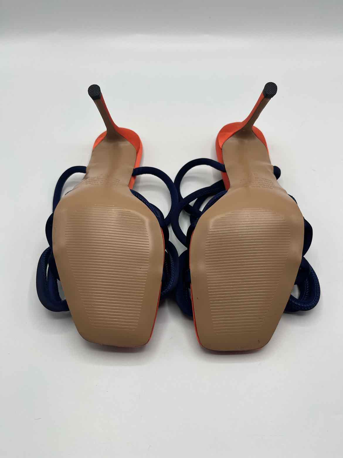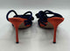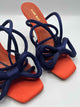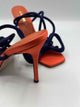 NWOB,square open toe,orange,navy,Bowie satin stiletto heel,wrap buckle closure,satin bow upper detail,4 inch stiletto heel