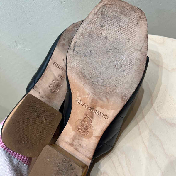 Featuring a modern squared toe and open design, the Bernardo Black Size 9 Shoes bring a fresh perspective to pre-loved designer footwear. Crafted from quilted leather and set atop a wooden block heel, these shoes blend comfort with a touch of contemporary style—an ideal find for those who appreciate authentic luxury resale and women's consignment fashion. The classic black color and Bernardo’s refined detailing make these shoes a notable addition to any collection. Offered in good condition, they represent both quality and value for the discerning shopper seeking unique, curated pieces.