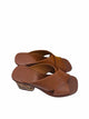 Laia mules w/ braided rope block heel and brown leather crossover straps, solid brown, open toe