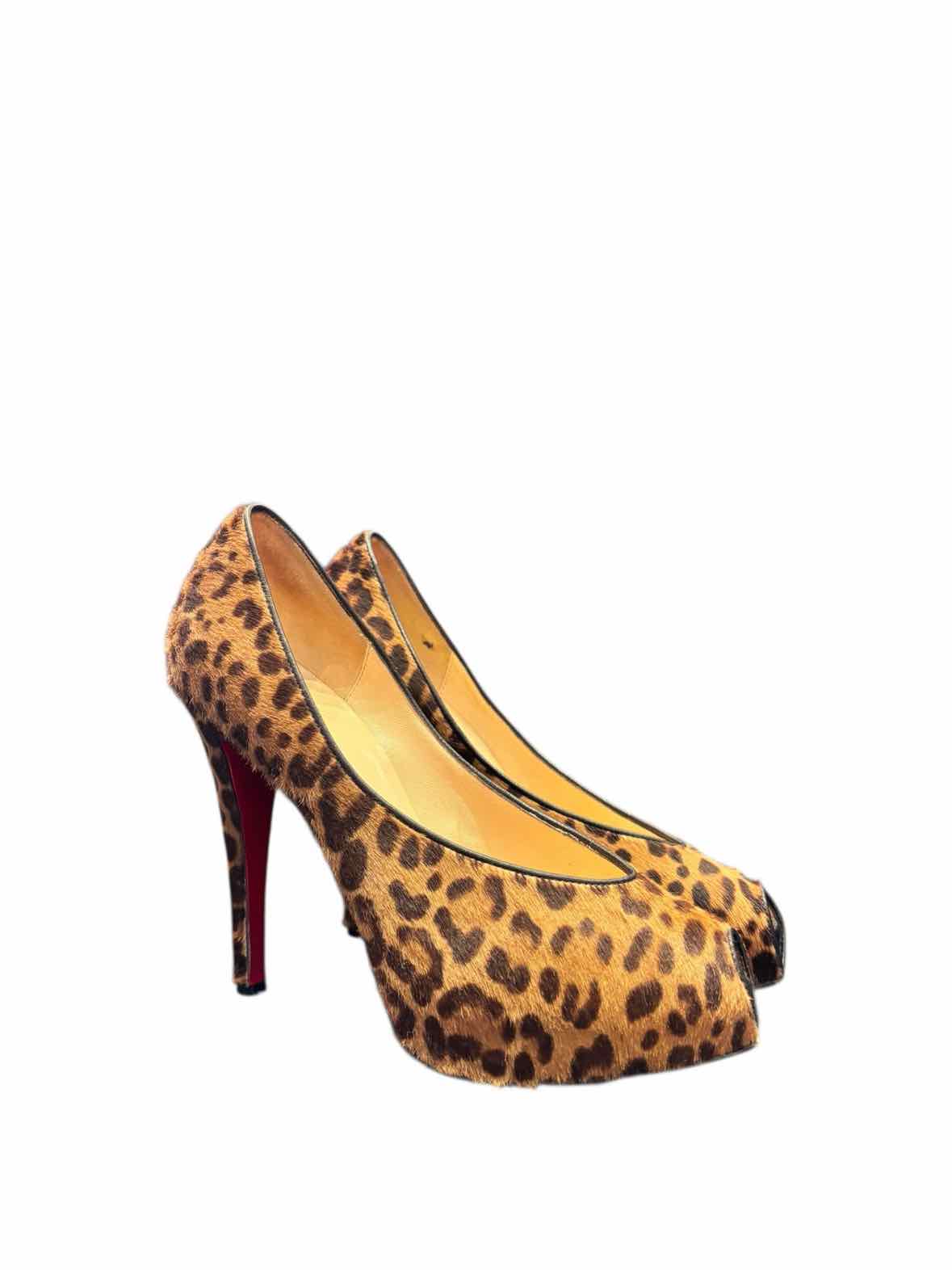 The cheetah print and bold red sole of these Christian Louboutin Cheetah Size 38 Shoes bring a distinctive edge to any pre-loved designer wardrobe. Crafted from full cheetah faux hair, this authentic luxury resale find is a chic addition to women's consignment fashion. The striking stiletto heel, peep toe silhouette, and convenient slip-on design offer both style and ease, complemented by a platform for added comfort. Sourced from Baton Rouge, these Louboutins reflect the brand’s iconic attention to detail and signature flair. Experience the unique blend of luxury and style with this exceptional designer piece.