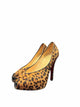 box- stiletto, peep toe, slip on, full cheetah faux hair, red bottom, platform