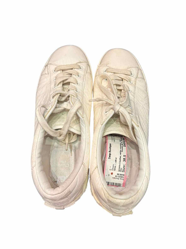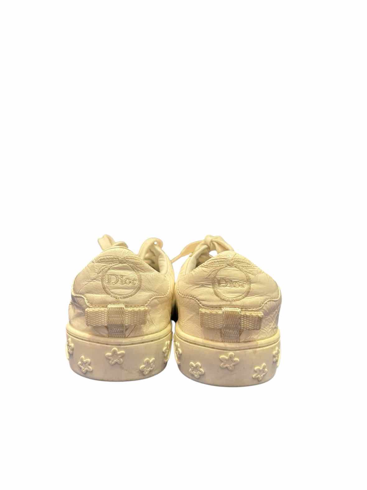 Crafted from sumptuous leather, these Dior White Size 38.5 Shoes bring a refined touch to authentic luxury resale and women's consignment fashion. The wrinkled leather texture and classic white color create a beautiful foundation, while the iconic Dior design on the sole and an elegant bow detail at the back add a distinctive designer flair. White laces complete the look, making these pre-loved designer sneakers an exceptional addition to any curated wardrobe. Experience the blend of quality materials and notable Dior styling in this unique pair, carefully sourced for the discerning fashion enthusiast.