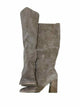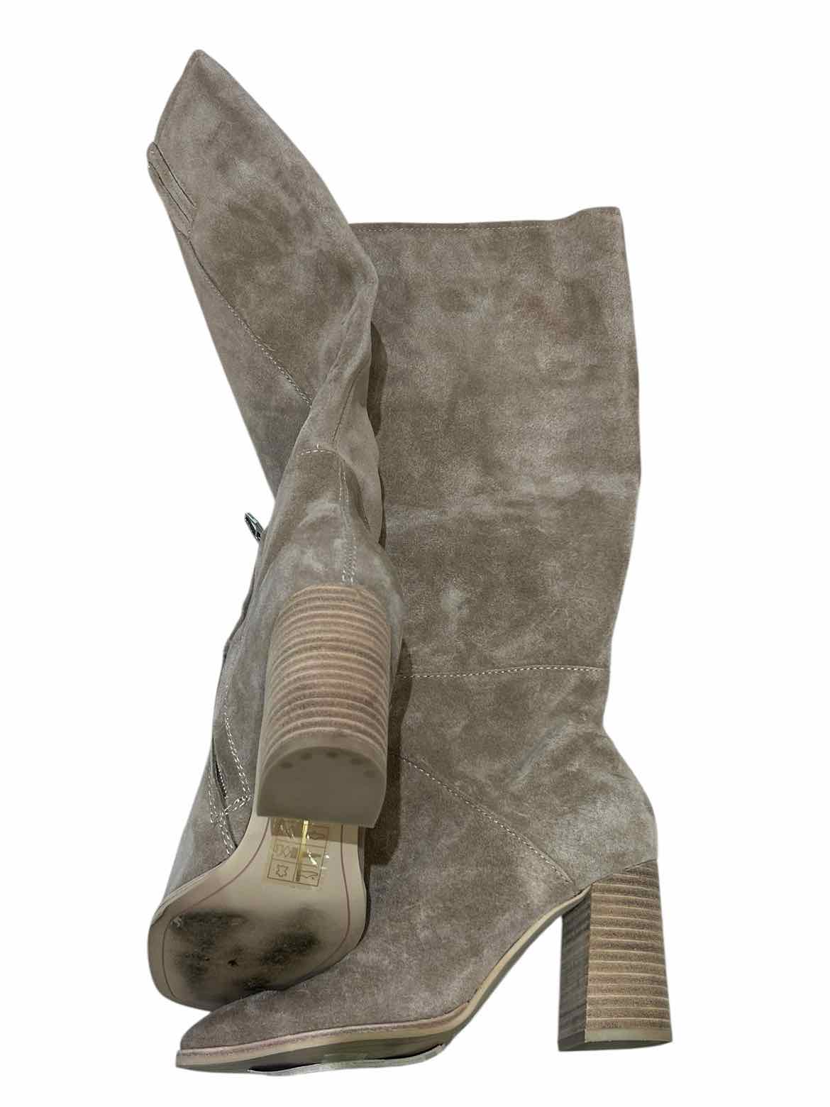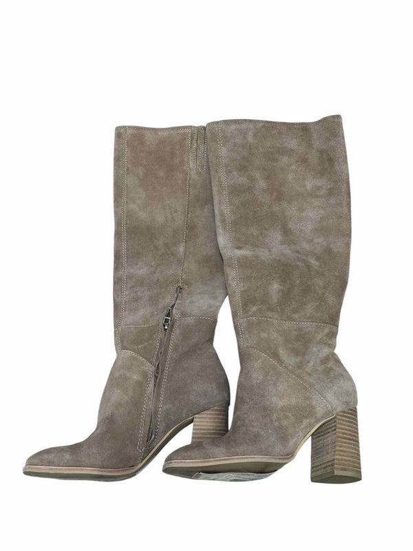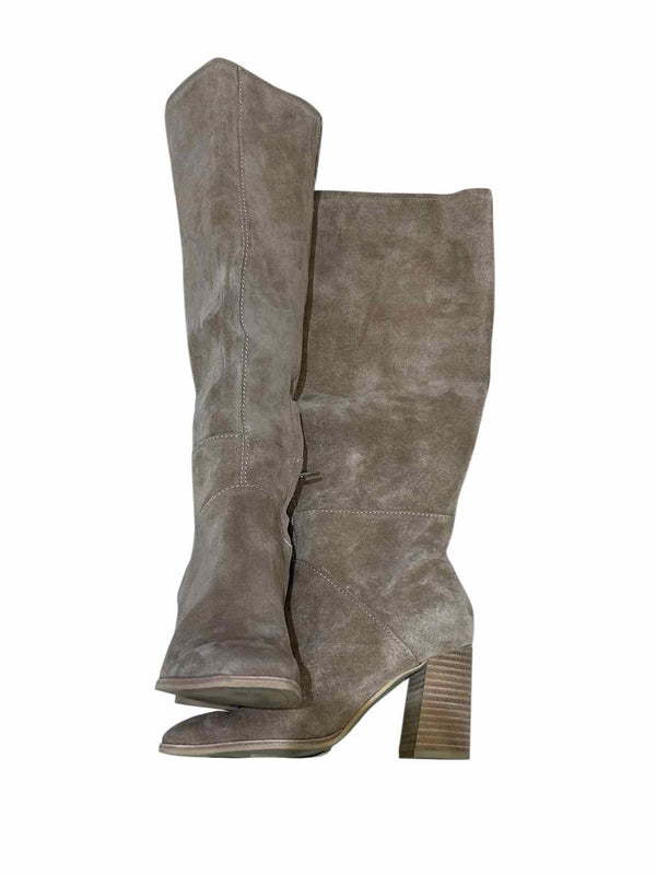 Crafted from rich suede, these Dolce Vita Taupe Size 6 Boots offer a beautiful blend of texture and timeless style for the discerning woman. Designed with a knee-high silhouette, distinctive square toe, and a wooden block heel, this pair brings a refined touch to any wardrobe. The inner heel zip ensures easy wear, while the original box adds an extra layer of authentic luxury resale value. As part of our women’s consignment fashion collection, this pre-loved designer find in taupe is a chic way to refresh your footwear rotation with distinct Dolce Vita flair.