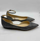 Rp1 Closed pointed toe,metallic gunmetal silver glitter flats,side cutout,adjustable ankle strap with buckle,gunmetal hardware (4/23/2025 425)