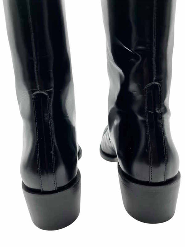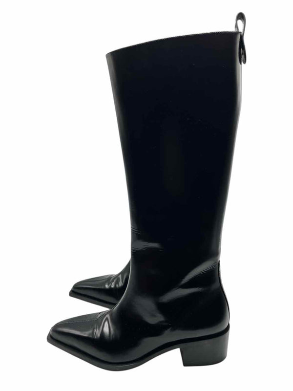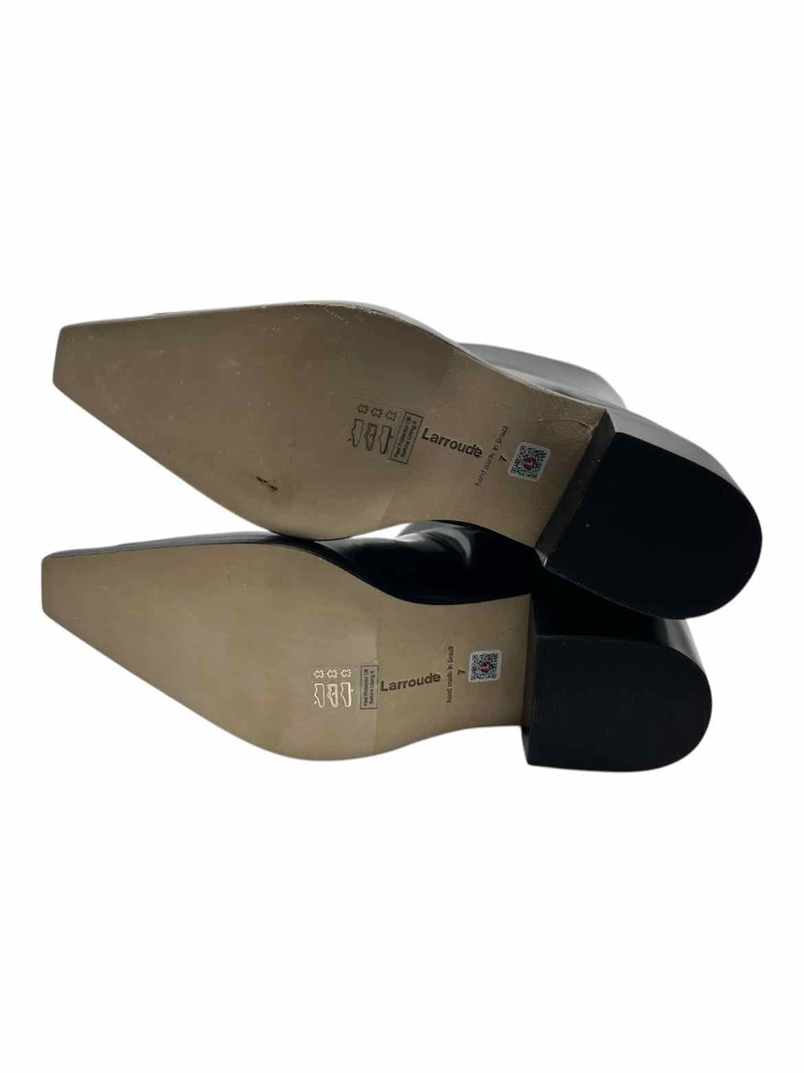 Featuring a striking knee-high silhouette, the Larroude Black Size 7 Boots bring a touch of tailored polish to any modern closet. Crafted for authentic luxury resale, these pre-loved designer boots boast a solid black finish, a closed pointed toe, and a practical 2-inch block heel, making them a refined choice for women's consignment fashion. Details like the Florencia style and convenient pull tab complete their versatile appeal, while their “Very Good” condition ensures continued wearability. Discover the timeless confidence and distinctive elegance these boots can add to your wardrobe.