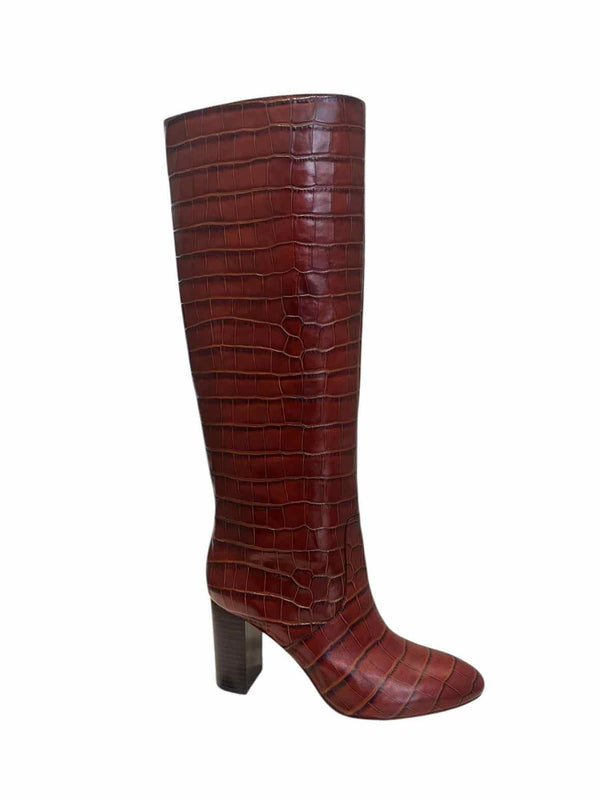 Featuring a chic knee-high silhouette and a tall wooden block heel, the Loeffler Randall Brown Size 8.5 Boots bring a refined touch to any wardrobe. As part of authentic luxury resale, these pre-loved designer boots showcase a brown faux crocodile texture for a distinctive, reptile-inspired finish. The classic round toe and women's consignment fashion appeal make them a unique addition for those seeking both style and quality. Carefully curated for fashion enthusiasts, this pair celebrates the best of modern footwear with its polished look and enduring design.