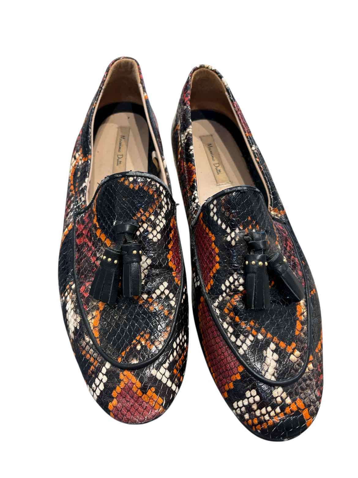 Featuring a timeless flat loafer silhouette, the Massimo Dutti Wine and Black Size 39 Shoes offer a blend of classic design and contemporary flair for women's consignment fashion lovers. Crafted with a reptile multi-textured finish and accented by a leather tassel front, these pre-loved designer shoes bring a refined touch to any wardrobe. Their wine and black color palette ensures versatility, making them a smart choice within the world of authentic luxury resale. Carefully curated in good condition, this pair combines quality and style for those who value both elegance and sustainability.