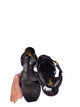 Tribute platform heel, open toe, gold hardware, solid black color, w/ dustbag, patent leather