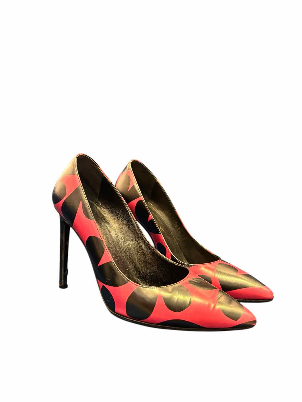 The color combination of red and black brings bold energy to these Saint Laurent Red and Black Size 36 Shoes, available through authentic luxury resale. Designed with a distinctive stiletto silhouette, these pre-loved designer heels feature a pointed toe and a black 'flower petal' motif, enhancing any women's consignment fashion collection with a sense of artistry. Their slip-on style ensures both ease and elegance, while the renowned Saint Laurent craftsmanship is evident throughout. Discover refined details and a unique design with this curated pair, perfect for those who seek eye-catching footwear from one of fashion’s leading houses.