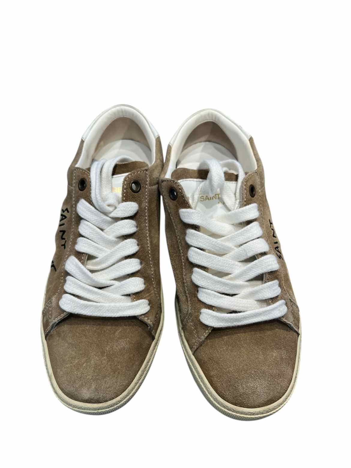 Crafted from luxe suede, these Saint Laurent Tan Size 37 Shoes offer a refined take on women’s consignment fashion. The tan hue pairs beautifully with white laces, while an embroidered logo on the sides adds an authentic touch of designer heritage. As a pre-loved designer find in very good condition, this item is part of our commitment to authentic luxury resale. Enjoy the timeless appeal of Saint Laurent craftsmanship at a fraction of the original price, knowing each detail has been carefully curated for today’s fashion-conscious woman.