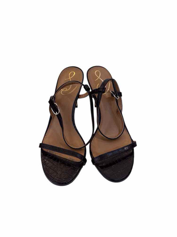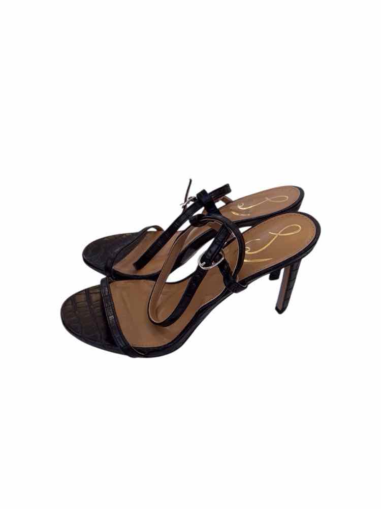 Featuring a striking strappy silhouette, the Sam Edelman Black Size 6 Shoes blend chic design with classic elegance. These pre-loved designer heels from our authentic luxury resale collection deliver refined style through their stiletto heel, open toe, and adjustable ankle strap with silver hardware details. Ideal for refreshing your women's consignment fashion wardrobe, this pair comes in a versatile black hue and is offered in good condition. Experience the exceptional craftsmanship and timeless appeal that have made Sam Edelman a favorite among discerning shoe lovers.