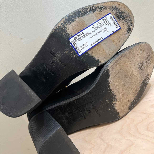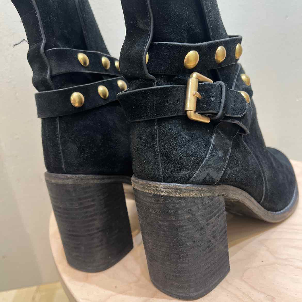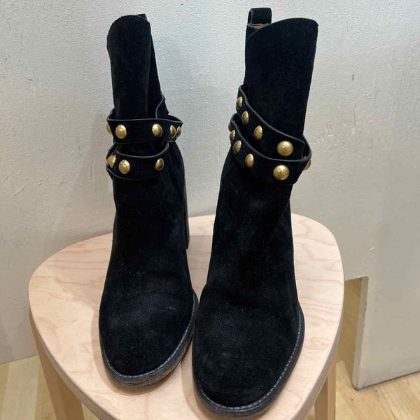 Featuring a chic rounded toe and distinctive gold studded straps, the See by Chloe Black Size 39 Shoes bring refined style to any pre-loved designer collection. These block heel booties, crafted from rich black suede, add a touch of elegance and polish to your wardrobe. As part of authentic luxury resale, this pair is offered in very good condition, making it a smart choice for those who appreciate quality women's consignment fashion. Make a notable addition to your closet with a designer piece that blends comfort, durability, and unique detailing.