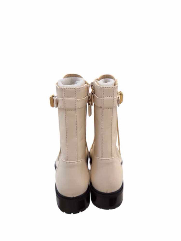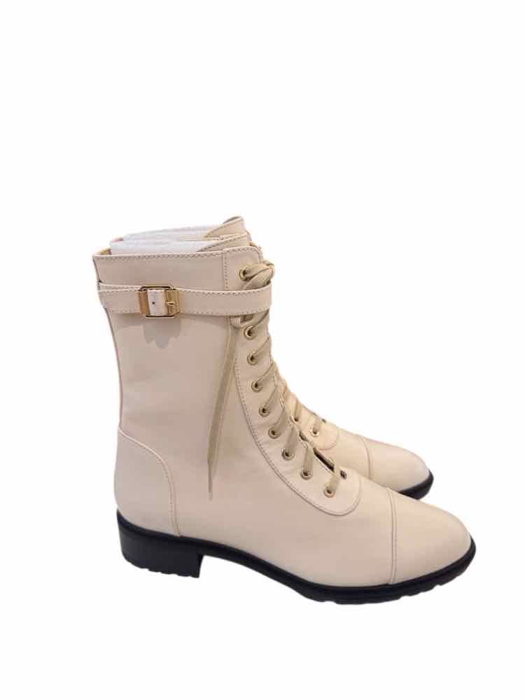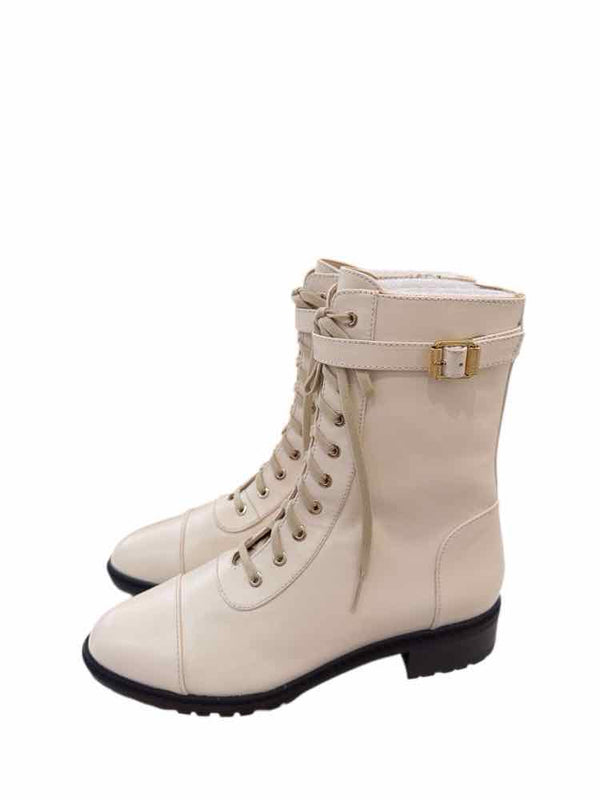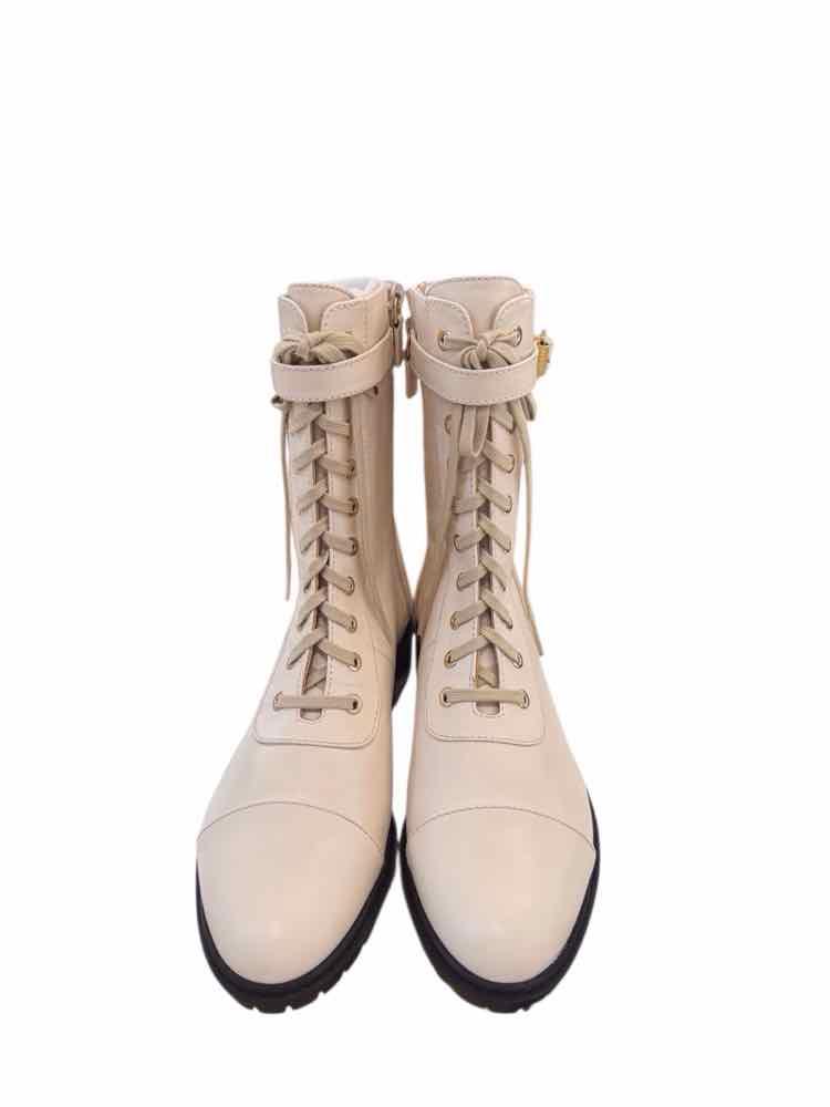 The off white hue of the Stuart Weitzman Off White Size 8 Shoes brings a distinctive, modern edge to women’s consignment fashion. An authentic luxury resale find, this pair features Thalia leather in a combat lace-up boot style, accented with gold hardware and a black small platform. Carefully curated for those seeking pre-loved designer pieces in new condition, these boots enhance any collection with their unique combination of refined materials and eye-catching details. Discover the elegance and versatility that make these Stuart Weitzman boots a remarkable choice for your wardrobe.