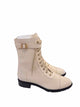 Thalia Leather Combat Lace Up Boot in off white, gold hardware, high top, black small platform