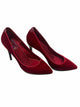 pointed toe, red velvet closed toe heel, black stiletto, black sole