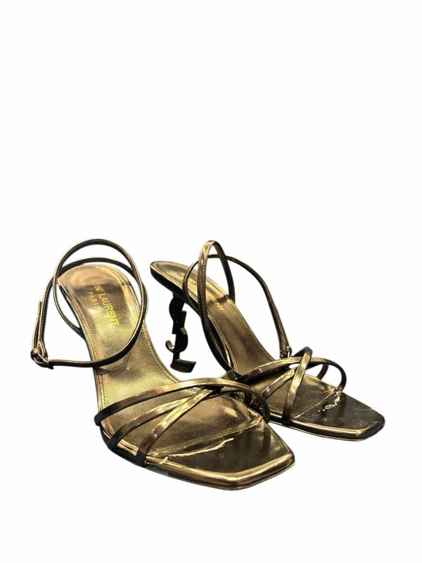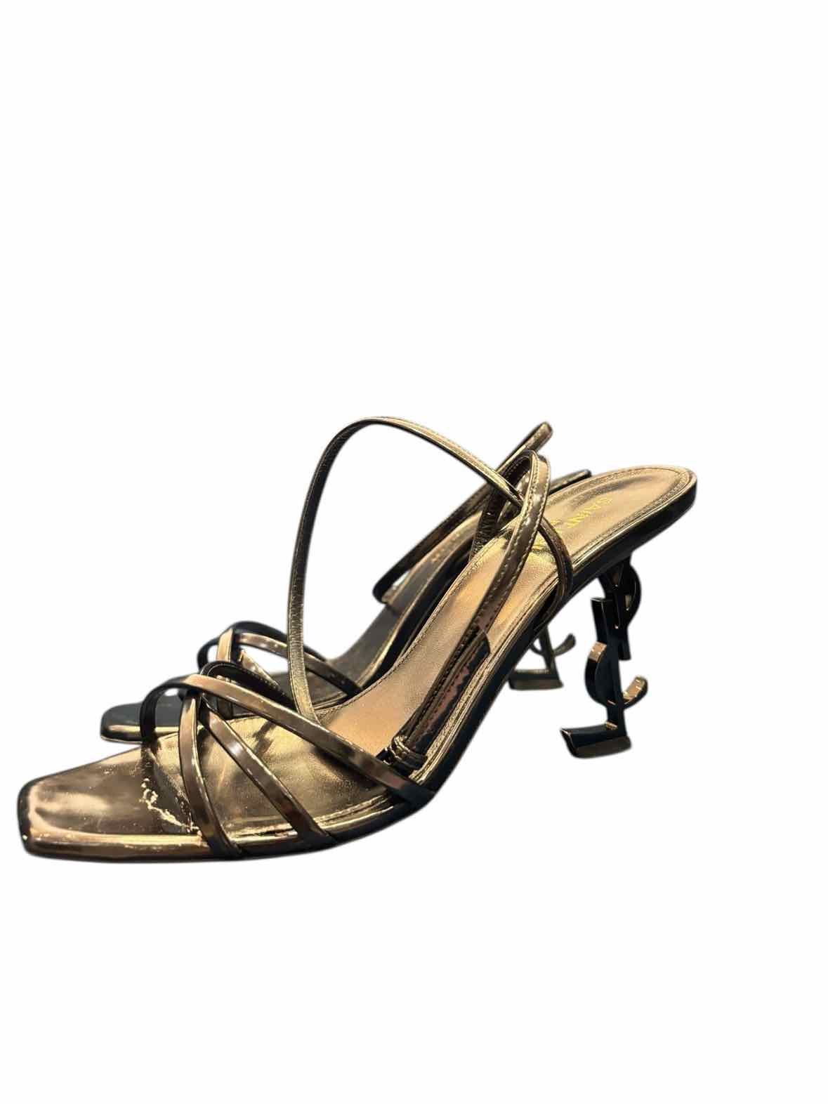 comes with box, strap heel, criss cross toe strap, YSL heel, square toe