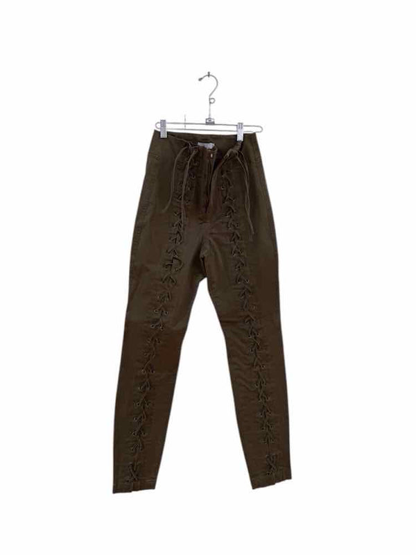 Featuring a lace-up silhouette with striking silver hardware, the A.L.C. Deep Green Size 4 Pants offer a modern twist on classic tailoring. The solid deep green hue brings a touch of refinement, while the adjustable laces at the waist add both function and visual interest. Carefully curated as part of authentic luxury resale, these pre-loved designer pants reflect the quality and detail expected from women’s consignment fashion. In very good condition, this unique pair is ideal for those seeking a special piece with signature style and versatility for any wardrobe update.