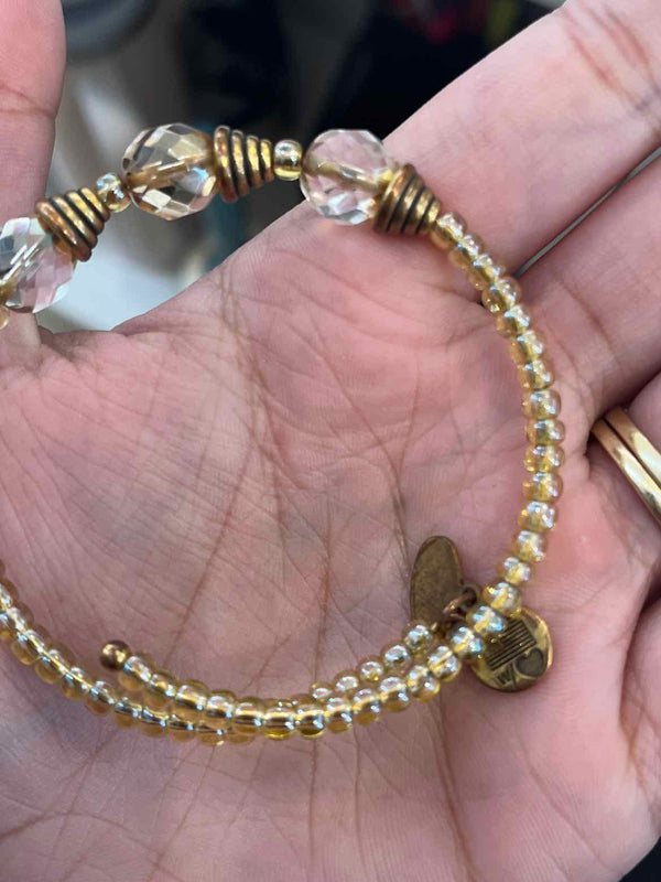 Featuring a beautifully beaded design, the Alex and Ani Gold Bracelet is a distinctive addition to any authentic luxury resale collection. This pre-loved designer piece showcases three larger beads among a sequence of smaller ones, complemented with signature Alex and Ani charms for added detail. The polished gold color lends a refined touch, while its very good condition ensures it remains a special find in women's consignment fashion. Carefully curated and available from South Miami, this bracelet blends unique craftsmanship with the quality assurance you expect from a trusted resale source.