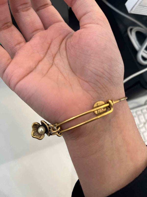 The gold tone of the Alex and Ani Gold Bracelet brings a polished accent to any jewelry collection, making it a beautiful find in the world of authentic luxury resale. Designed with distinctive circle and seashell charms, this pre-loved designer piece adds a touch of unique charm to women's consignment fashion. Whether worn alone or combined with other favorites, its refined style speaks to thoughtful curation and quality. Experience the allure of an accessory that features signature Alex and Ani details, offering a chic option for those who appreciate both elegance and sustainability in their accessories.