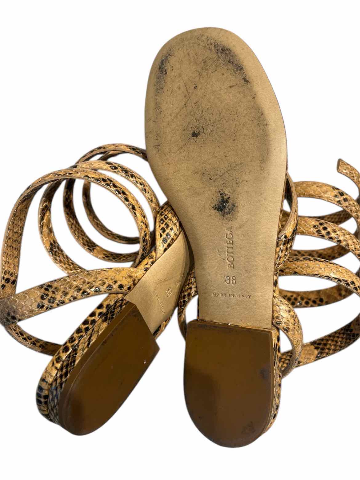 Featuring a striking wrap up spiral style, the Bottega Veneta Tan Size 38 Shoes bring a unique twist to authentic luxury resale. These pre-loved designer sandals showcase python embossed leather in a versatile tan hue and highlight women’s consignment fashion at its best. With their open toe silhouette and exceptional condition, this pair is a remarkable addition to any curated wardrobe. Discover refined details and craftsmanship synonymous with Bottega Veneta, crafted for those who appreciate distinctive design and premium materials.