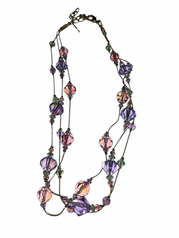 Three strand chrystal necklace,Lobster claw clasp,15 1/2 inches