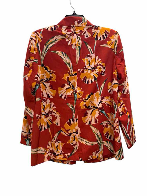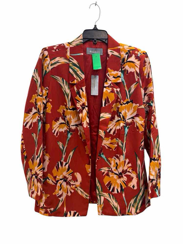 The color and pattern of this Daniel rainn burnt orange multi Size SP Blazer bring a unique charm to any wardrobe. Featuring a rich burnt orange/red base adorned with a vibrant yellow flower design, this pre-loved designer piece is part of our authentic luxury resale collection. Designed in a classic long sleeve style and crafted from polyester, it offers both comfort and visual appeal. As new with tags (NWT), this women's consignment fashion find is ready to complement your favorite outfits, whether for work or casual occasions. Experience a distinctive blend of style and quality with this beautiful blazer.