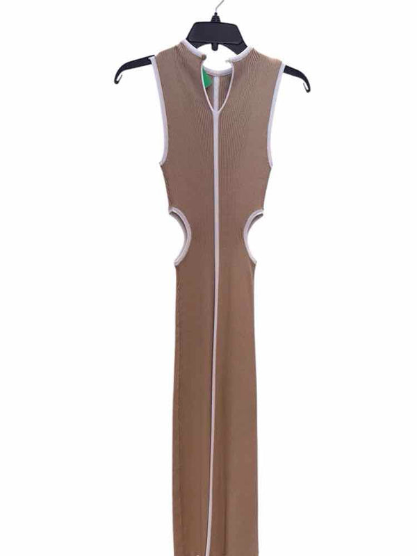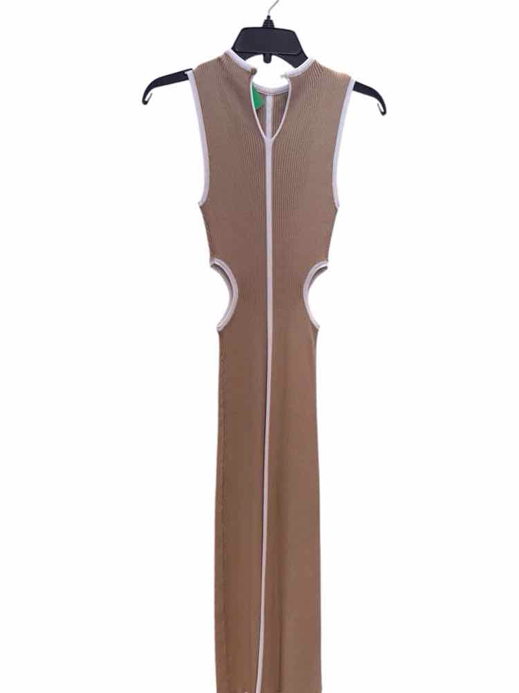 Binding Knit Wheat Midi Dress, EXTREMELY STRETCHY, tank slv, tall dress, size small