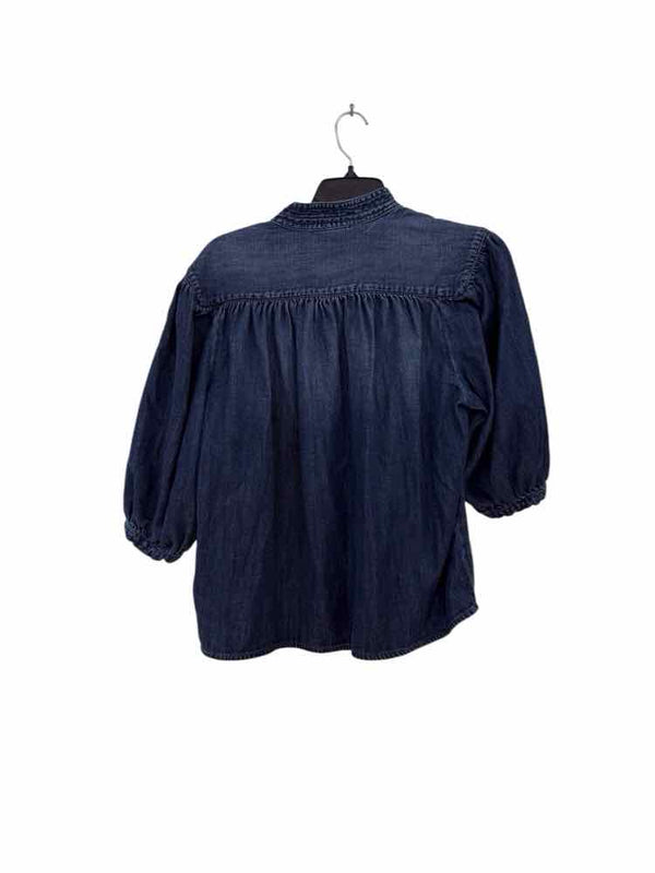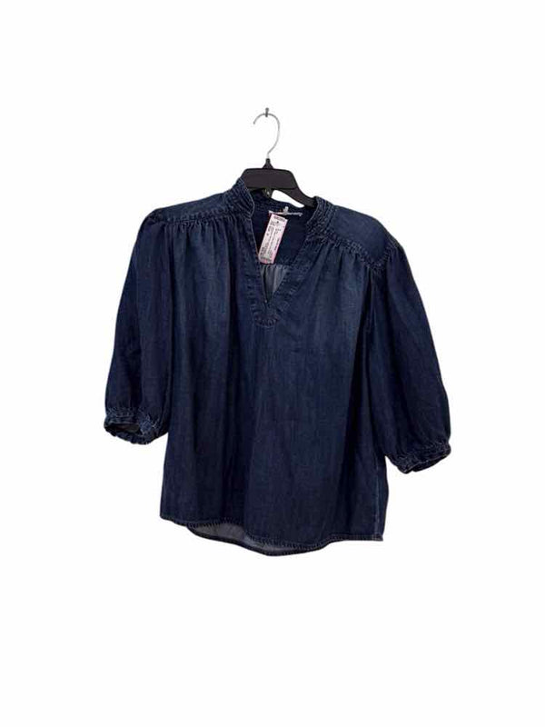 Crafted from a soft cotton blend, this Frame Dark Wash Size M Blouse brings refined comfort and versatility to your wardrobe. The solid dark wash denim offers a chic, polished look, while midi length sleeves and a slight V-neckline enhance its timeless appeal. Designed with a slightly loose fit, this pre-loved designer piece is ideal for those who value both authentic luxury resale and women's consignment fashion. With its excellent condition and distinctive details, this blouse is an exceptional choice for refreshing your collection with a touch of understated style.