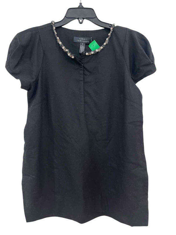 Robert Rodriguez’s signature attention to detail defines this Robert Rodriguez Black Size 6 Shirt, a refined option in pre-loved designer women’s consignment fashion. Designed in rich black wool, this authentic luxury resale piece features short sleeves, a flattering V-neck, and intricate beadwork. The button-down front and adjustable string on the back add both style and versatility. Carefully curated in very good condition, this shirt offers a chic update to your wardrobe with its tailored silhouette and exceptional craftsmanship. Discover a unique blend of elegance and modern design from a trusted designer, all while supporting the sustainable world of luxury resale.
