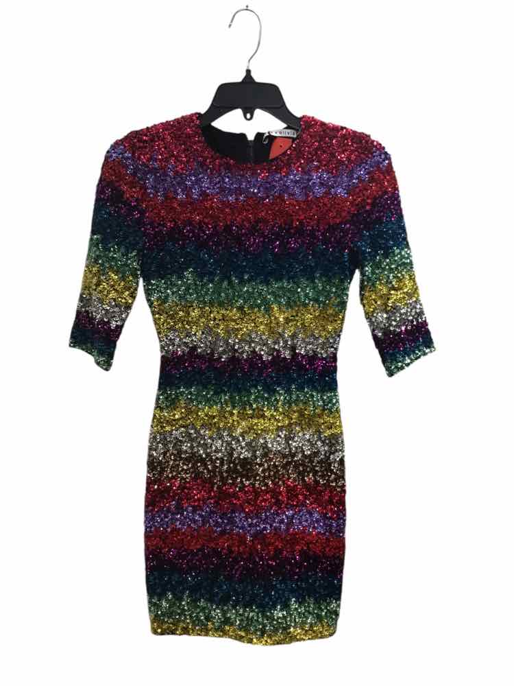 The rainbow hues of the alice + olivia Rainbow Size 0 Dress bring a lively splash of color to your collection of pre-loved designer finds. This authentic luxury resale piece features a sequin mini silhouette with a bodycon fit, short sleeves, and a classic crew neckline—delivering a chic, modern look for women's consignment fashion lovers. With its new condition and striking design, it’s a remarkable way to refresh your wardrobe while shopping sustainably. Discover vibrant style and designer quality carefully curated for your next occasion.